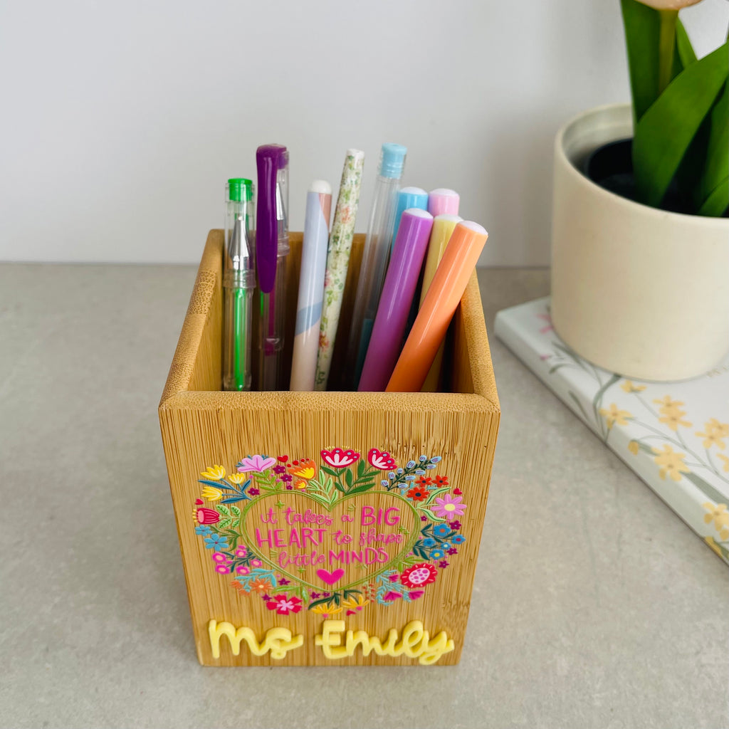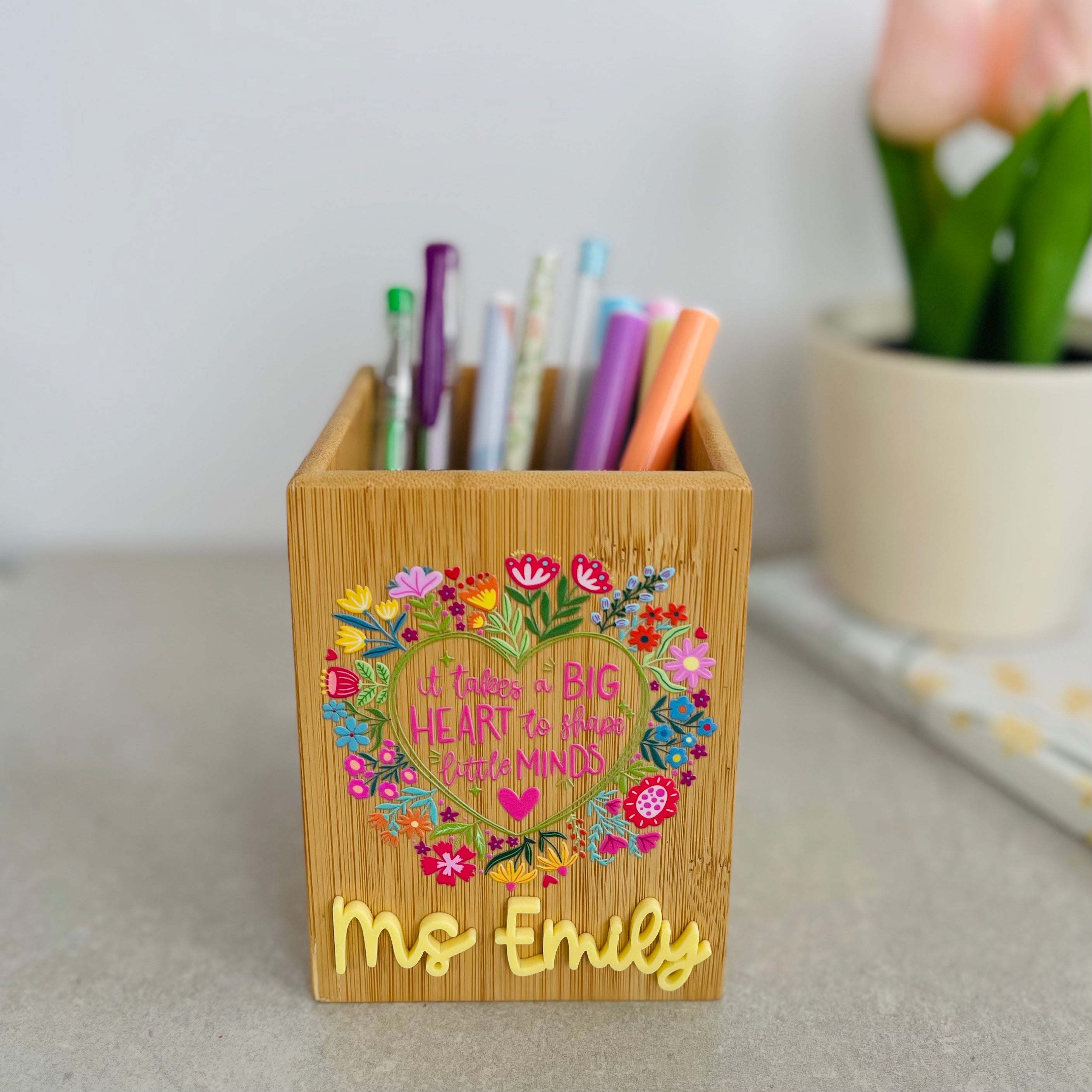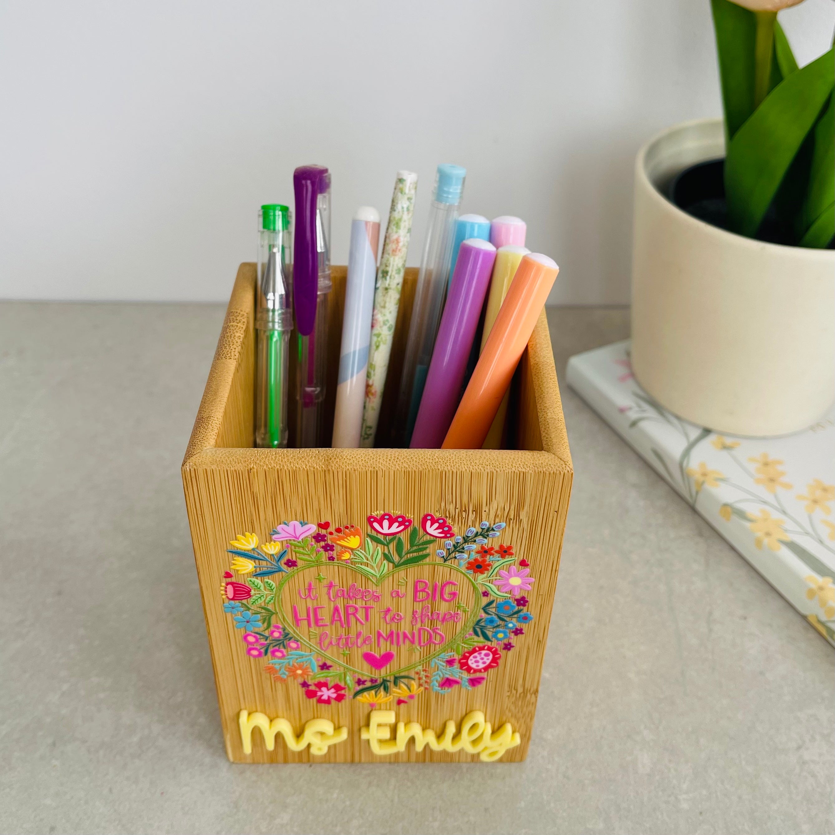 Personalised Teacher Pen Holder – Custom Bamboo Desk Organizer
