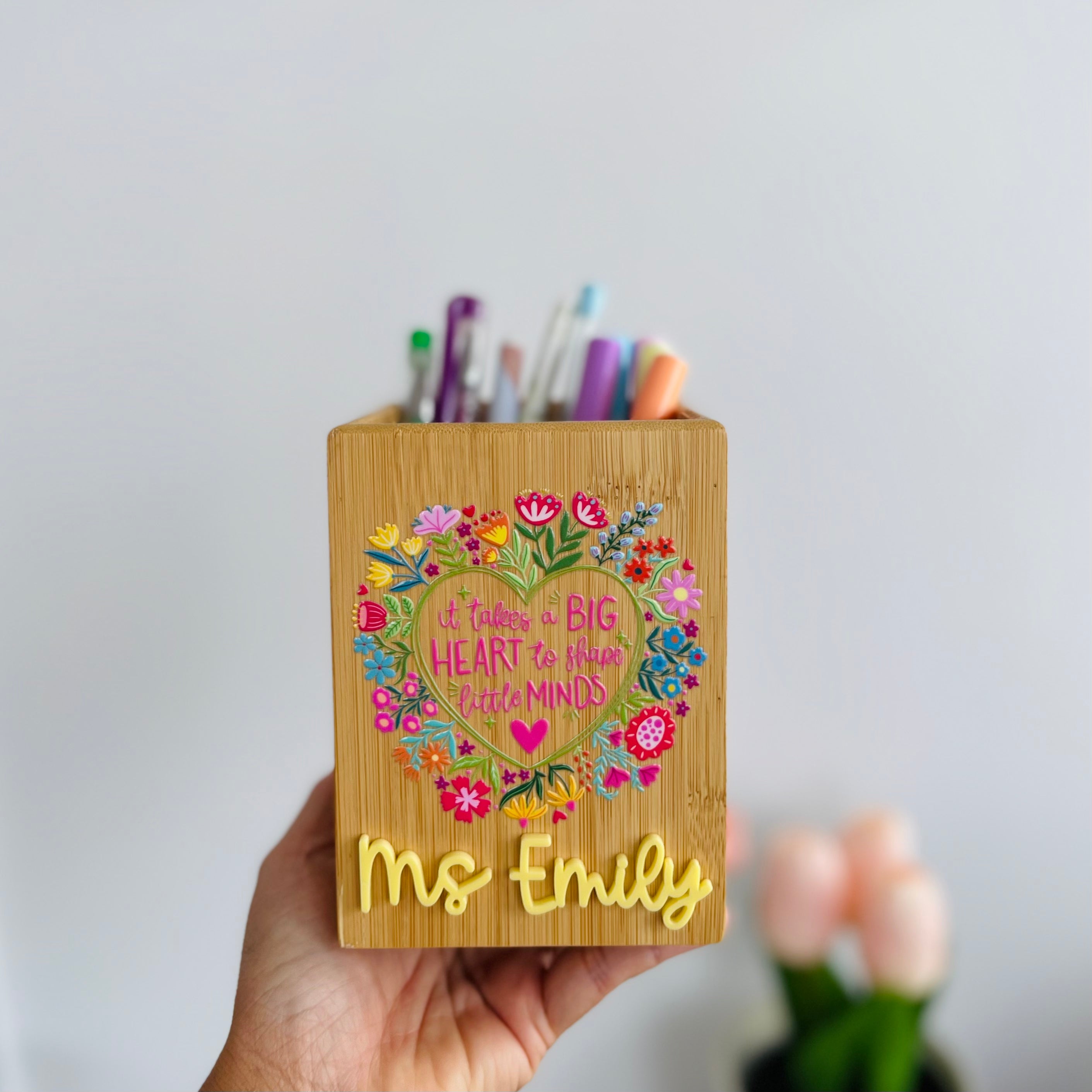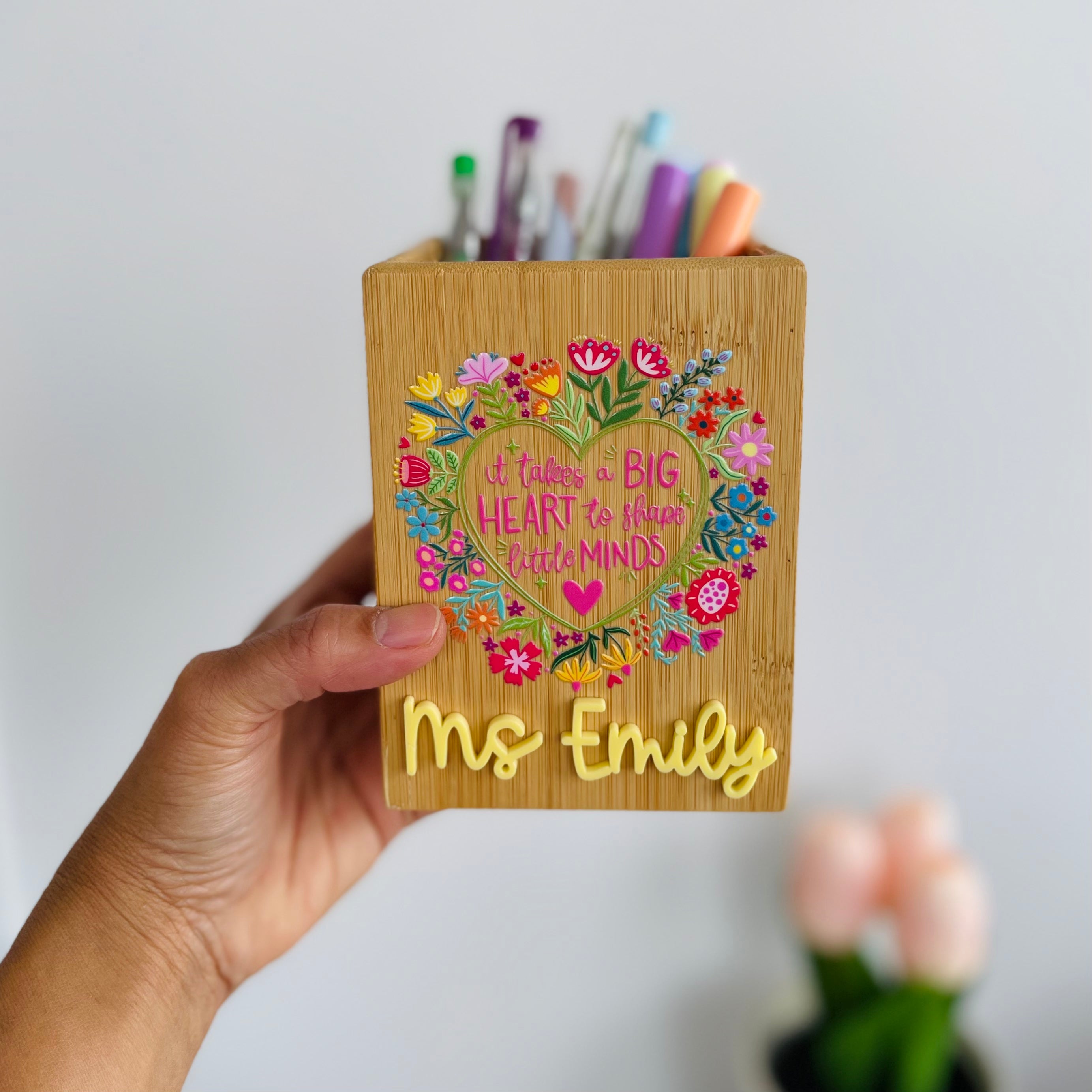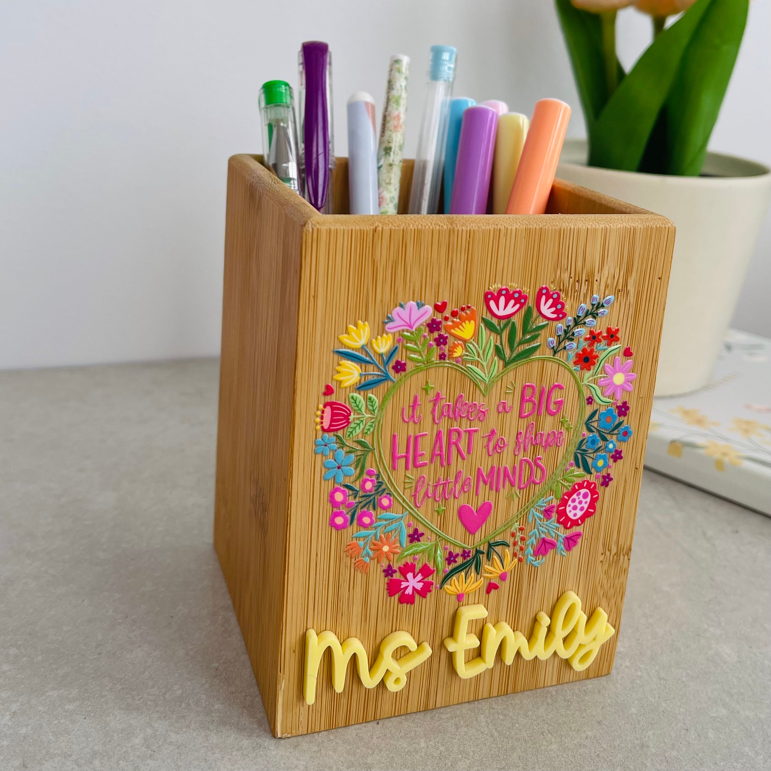 Personalised Teacher Pen Holder – Custom Bamboo Desk Organizer